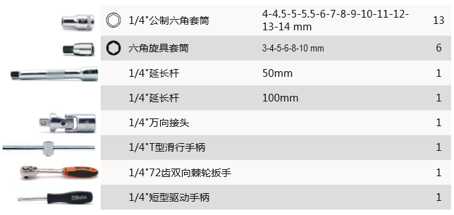 25件1/4套筒及附件软塑托盘工具组套