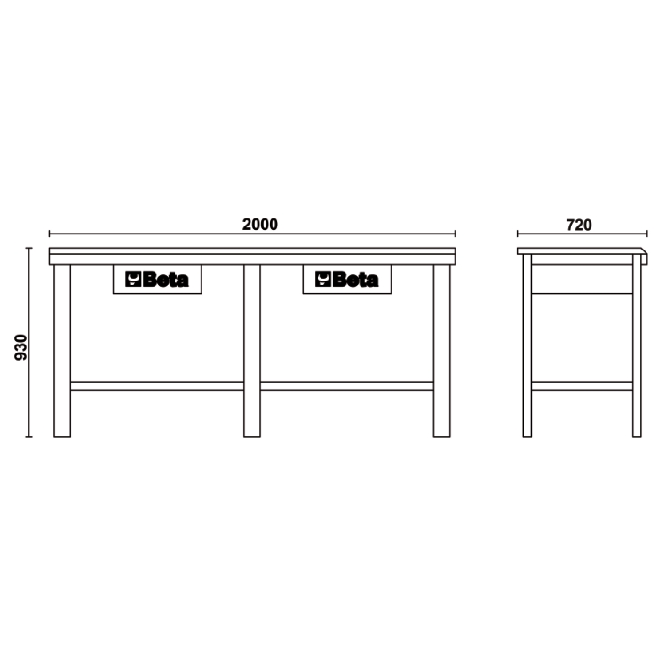• 带有虎钳孔的多层木质台面(台虎钳1599F/125,需单独订购)。